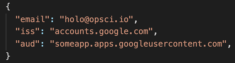 Why should I care that Google gave me JSON which says all these claims? Because Google gives something else along with it: a cryptographic signature which proves this came from Google. Essentially, you’ve been handed a certificate which you can show someapp that you are holo@opsci.io. someapp can then verify the signature to know it’s from Google.